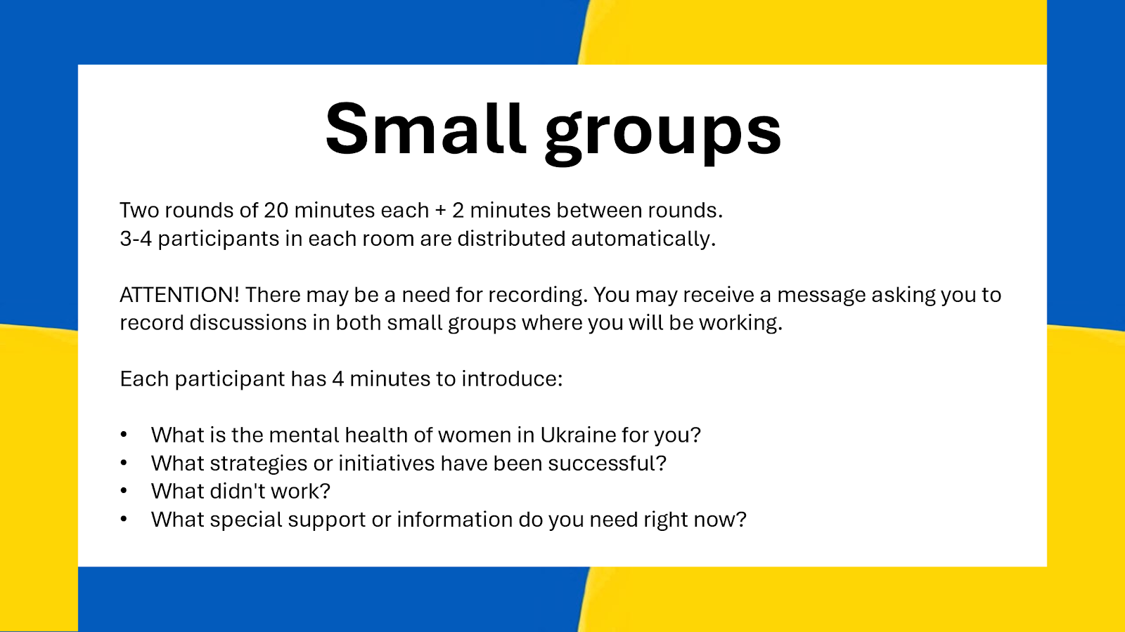 I proposed organizing an international online conference to unite as many of these organizations as possible. Nearly a year of planning followed, working alongside several dedicated women. Three months before the event, we asked each participant to prepare answers to three guiding questions, which became the foundation of the conference discussions: